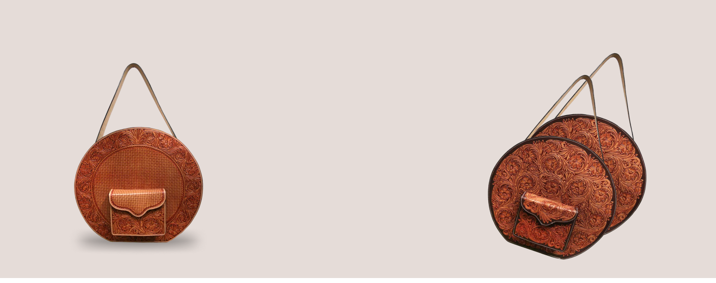 Rope Bag UBRB-006 Natural Leather with Basket Weave Tooling, Camo Edge and wide Floral Border. Has snap closure pouch... -